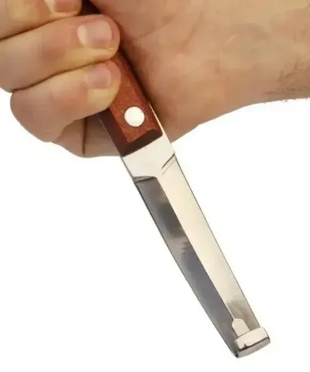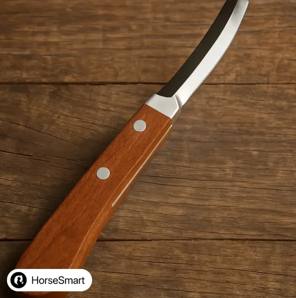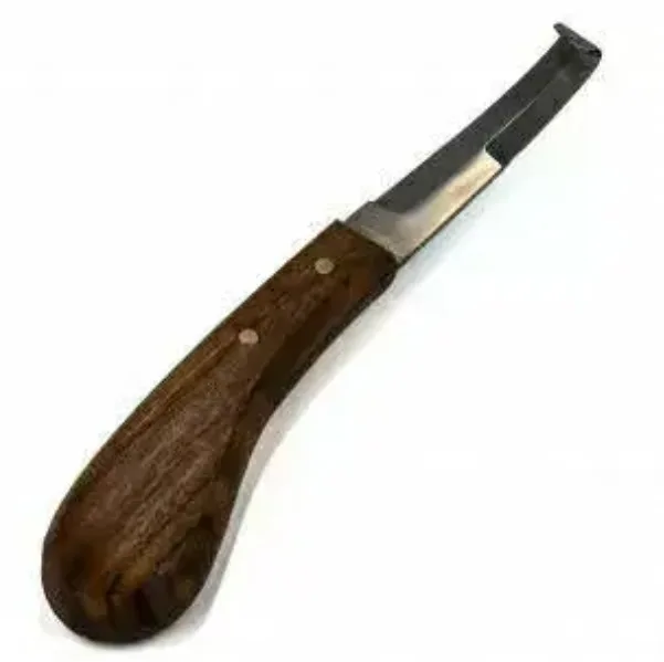 - Нож для копыт Reywan — это универсальный помощник. Его ключевая особенность — специальный незаточенный крючок на конце. Им можно аккуратно извлечь камешек или посторонний предмет из подошвы, не повредив ее. Лезвие из нержавеющей японской стали и эргономичная деревянная ручка делают работу безопасной.
