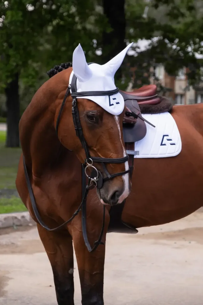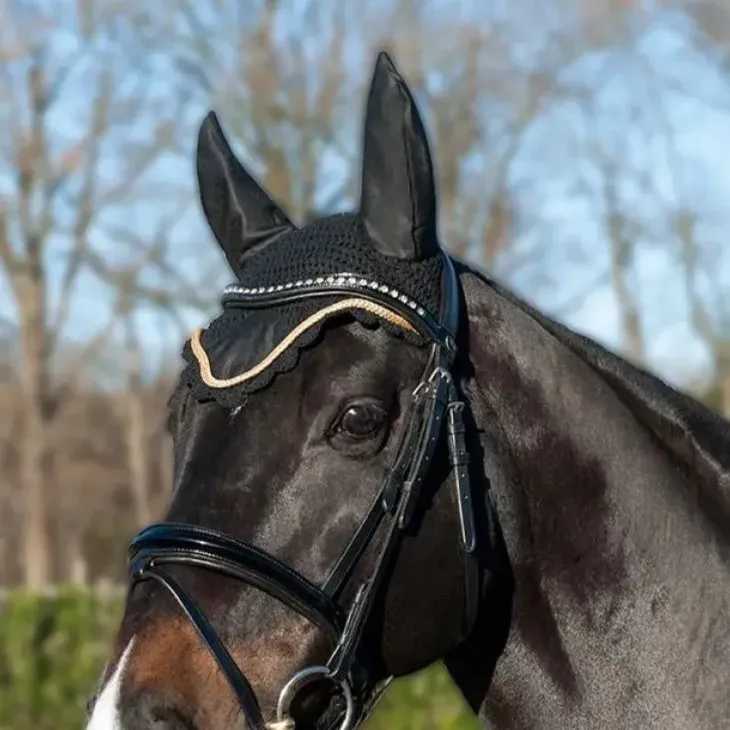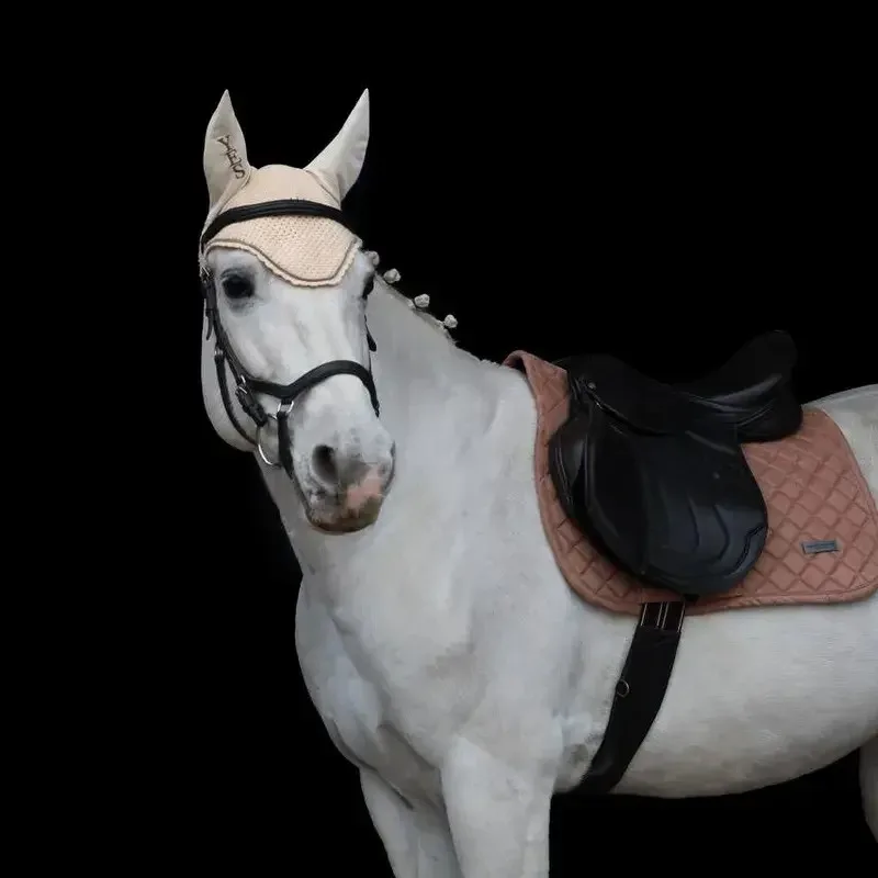 Для тех, кто любит детали. Ручная работа, премиальный гипоаллергенный трикотаж, идеальный крой — ушки не давят и не сползают. Нежный кремовый цвет и аккуратные стразы добавляют образу лёгкости и благородства. Создано с душой, как для своей лошади.