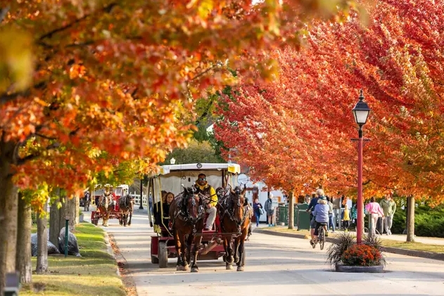 Недавно остров Макино в опросе USA Today «10Best Readers’ Choice Awards» его назвали лучшим местом в Соединенных Штатах для любования осенней листвой. Журналисты отметили его «свежие, солнечные дни с яркой листвой, которые идеально сочетаются с неспешным темпом жизни». И правда, сложно представить более подходящий способ насладиться осенним великолепием, чем из конного экипажа, когда золотые и багряные краски лесов раскрываются во всей своей полноте без привычного городского шума.