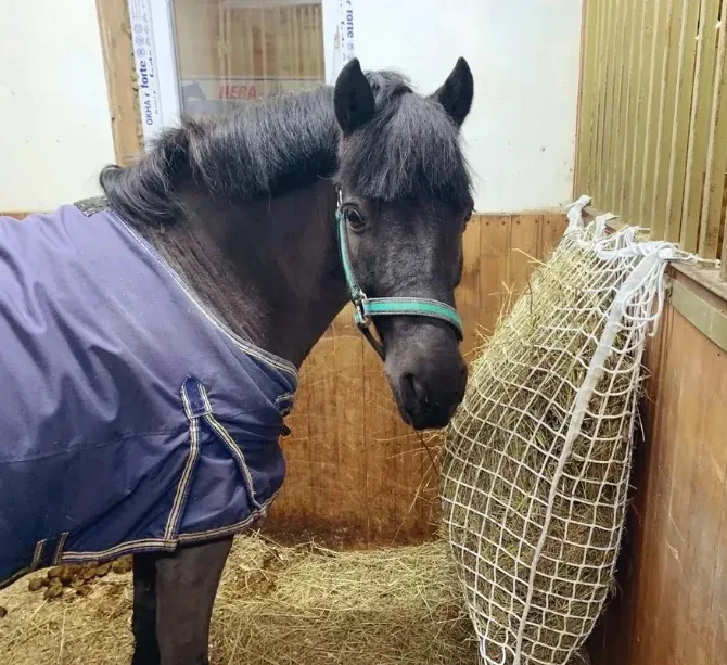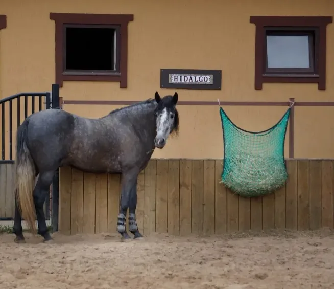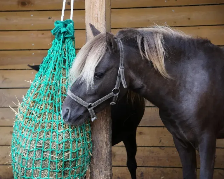 Незаменима, когда нужно занять лошадь на время. Благодаря небольшим размерам и прочному шнуру её легко повесить в проходе, деннике или даже взять с собой в дорогу. Вмещает до 5 кг сена.