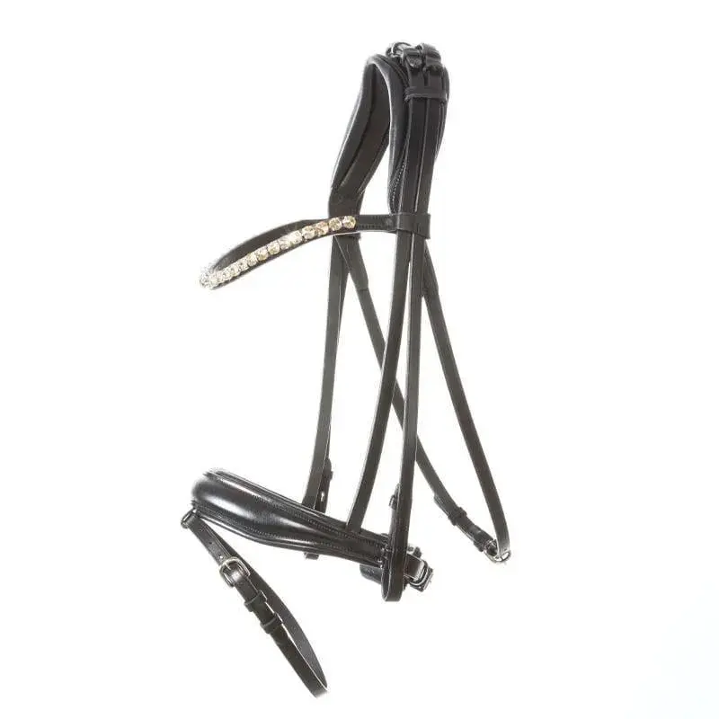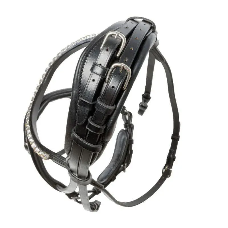 Оголовье Tasmanya — отличный сбалансированный вариант по комфортной цене для тех, кто ищет качественную, удобную для лошади амуницию с праздничным элементом в виде страз.