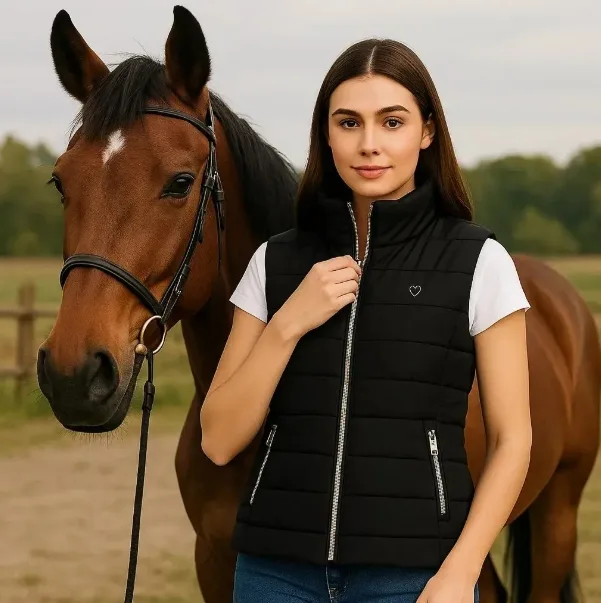 - Жилет для верховой езды Mesa: Стильная утеплённая жилетка (утеплитель 200 г/м²) для прохладной погоды. Выполнена из прочного нейлона, имеет анатомический крой, ветрозащитную планку и удобные карманы.