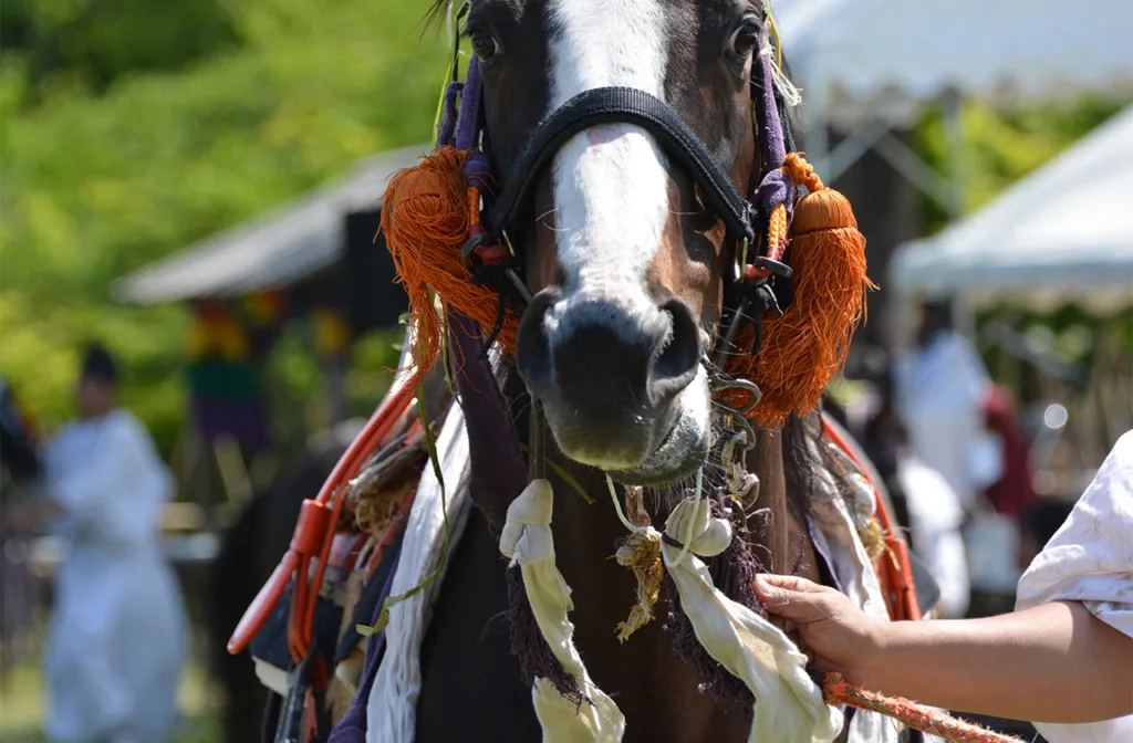 Лошади на этом мероприятии — чистопородные Кисо и Досанко — японские породы лошадей. В мире осталось всего около 150 лошадей Кисо и это единственная порода лошадей, родом из Хонсю, главного острова Японии.